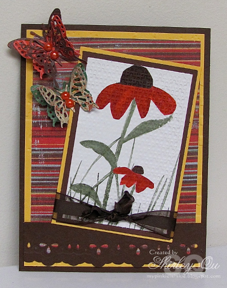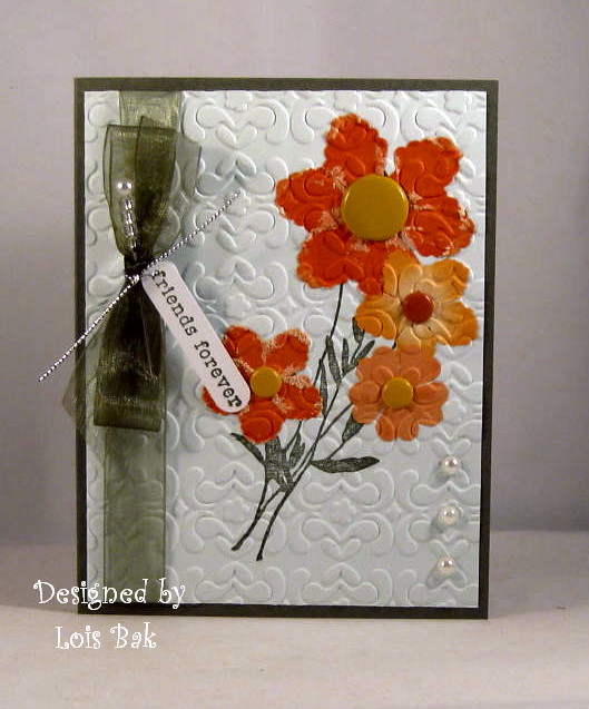 Hi, and welcome to the CCEE Stampers blog and challenge! My name is Vicky Gould and it is my honor to be the hostess for November. My challenge is to make a card with Faux Pressed Flowers. You can find a tutorial here - it's under Faux Pressed Flowers on SCS.
